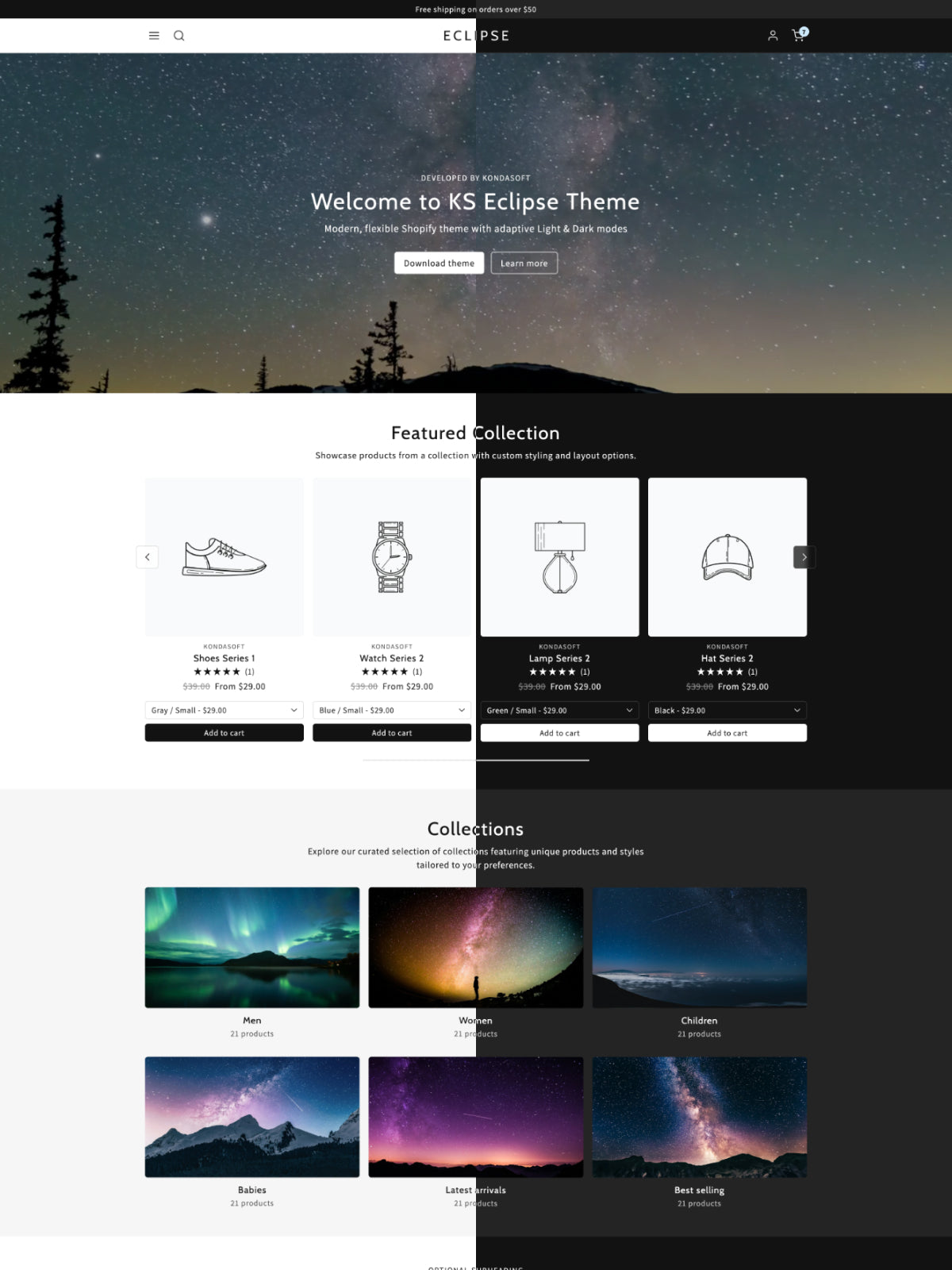 Modern, flexible Shopify theme with adaptive Light & Dark modes